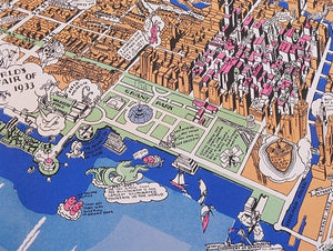 From the Poster Plus collection. Charles Turzak & Henry Chapman produced this whimsical map highlighting major events and neighborhoods in Chicago, including the Chicago World's Fair - A Century of Progress Fairgrounds. A great gift for your out-of-town family and friends, Chicago history buffs and World's Fair enthusiasts.